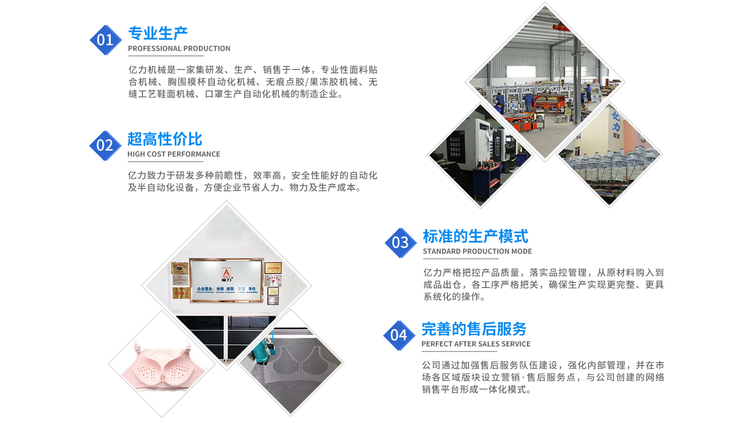 汕頭市億力機(jī)械設(shè)備有限公司網(wǎng)站正式上線! 汕頭市億力機(jī)械設(shè)備有限公司是一家集研發(fā)、生產(chǎn)銷售于一體的專業(yè)性面料貼合機(jī)械、胸圍模杯機(jī)械、無(wú)縫工藝鞋面機(jī)械、口罩生產(chǎn)線和焊耳帶機(jī)械企業(yè)。